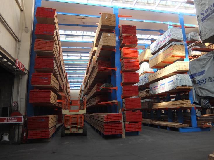 放置木材和建材產品的懸臂貨架。